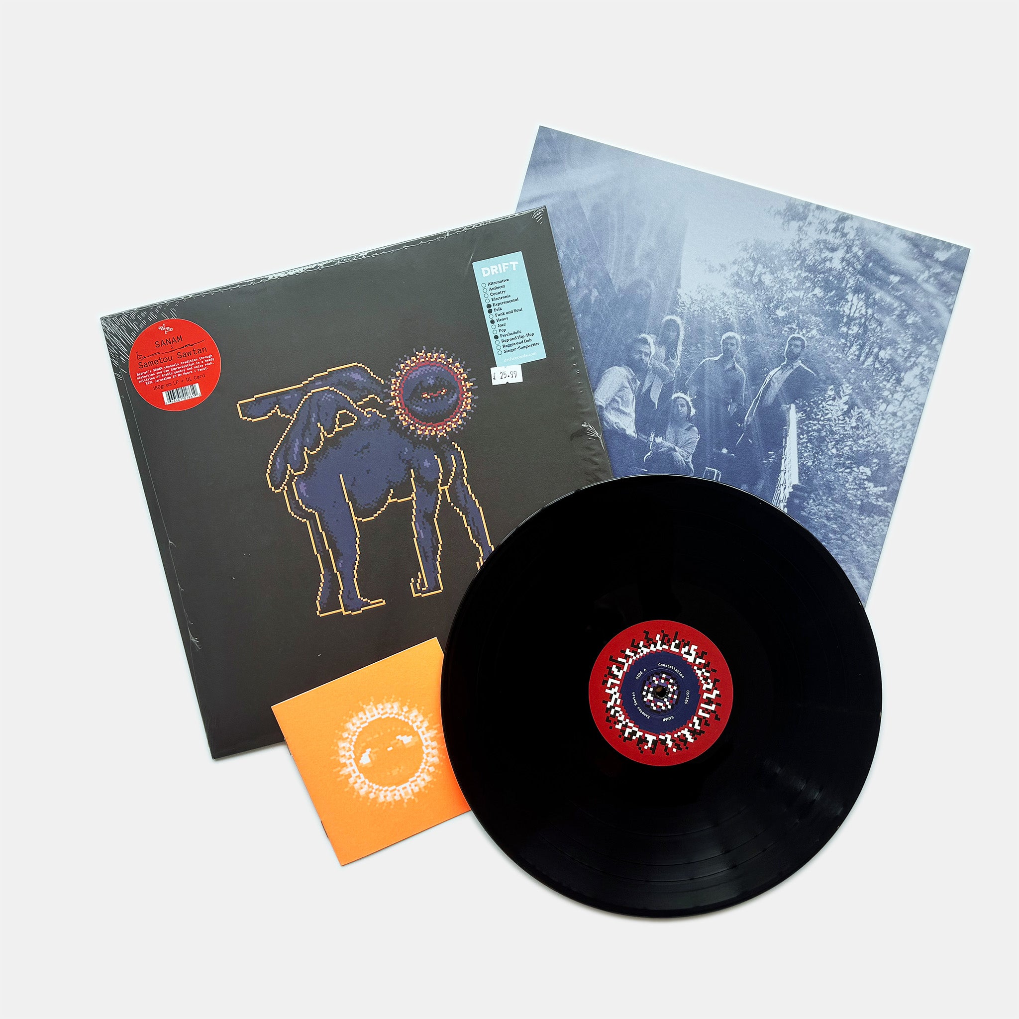 The title of the second SANAM album is as alive with possibility as the Lebanese band’s music. Sametou Sawtan translates from the Arabic to “I Heard A Voice”. Spooky or spiritual, however one reads the phrase, it speaks to the ability of sound and language to cause pause, steal attention, and open us to the moment. Likewise, the music of SANAM blurs tender frenzies and fire-scorched ballads, collapsing free-flowing rock and jazz frameworks into deeply rooted Arabic tradition. To hear them in full flight is to be held in the present and reorientated towards an open horizon.