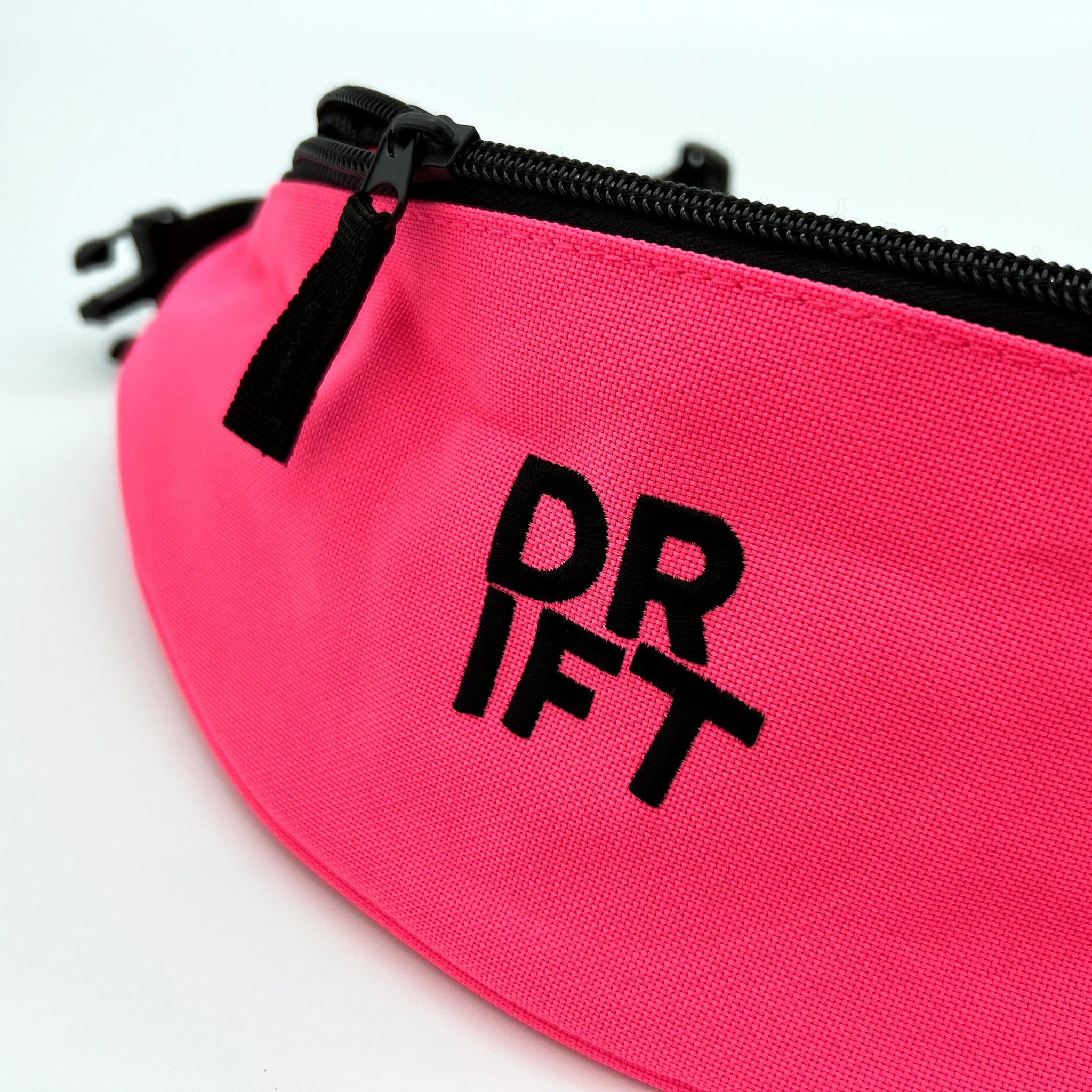A hot pink Yin compared to the subtle Black bag's Yang. A belt bag for all of your small and important goods, with a Drift logo embroidered on the front.
